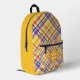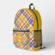 Personalize this colorful plaid school backpack with a name and monogram for a stylish back to school gift. Diagonal plaid with yellow contrast color. See other sizes and accessory styles in the drop down, as well as other matching items in this collection at KidsUnique on Zazzle.