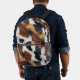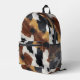our new backpack design featuring an image of brown, black, and white cowhide texture print.