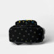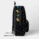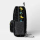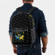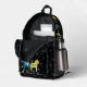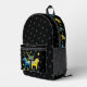 Este impreso tiene un diseño de caballo folk dala sueco con flores de arte folclórico a juego en los colores de la bandera sueca de amarillo y azul sobre fondo negro. En la parte superior hay una hilera de flores y animales de dala más pequeños. Personalice esto con su nombre y puede hacer que el patrón de flor de fondo de esta mochila sea más pequeño o más grande.