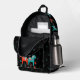 Este impreso tiene un diseño sueco de caballo de dala folclórica con flores de arte folclórico a juego en los colores de la bandera sueca de verde azulado y rojo sobre fondo negro. En la parte superior hay una hilera de flores y animales de dala más pequeños. Personalice esto con su nombre y puede hacer que el patrón de flor de fondo de esta mochila sea más pequeño o más grande.