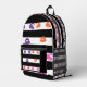 Única cara de modelo colorida con fondo gráfico de líneas negras y blancas.
