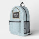 Escriba su propio nombre o mensaje en el pizarrón de papel colgante usando la plantilla proporcionada de este divertido diseño de mochila. Si lo prefiere, puede eliminar la capa de subrayado de tiza opcional para dejar espacio para un mensaje más largo en el pizarrón. El fondo es un patrón de puntas y rayas dibujadas a mano en azul y blanco. Busque ID397 para ver otras opciones de color y productos adicionales con este diseño.
