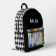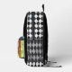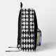 .: Esta mochila tiene un diseño divertido con colores audaces y primarios a lo largo de los lados de argyle en blanco y negro y diseño superior y cassette en el bolsillo.