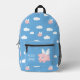 Mochila Impresa Cerdo volador con nombre personalizado azul