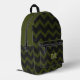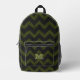 Mochila impresa en forma de Monograma del evron verde del ejército gris oscuro. Monograma Personalice con su nombre inicial personalizado. Líneas de patrón de chevron de color verde oscuro del ejército gris verde retro angustiado. Elegante rayas geométricas de color gris oscuro retro clásico Zig zag regalo para él.