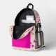 Elevate your accessory game with this stylish floral backpack, designed for both beauty and utility. Featuring a soft pink background and a garden-inspired pattern with vivid blossoms in red, orange, and yellow tones, this piece is perfect for trendsetters. The bold fuchsia front pocket adds a pop of color, while the black zipper and handle give it a sleek, modern edge. Ideal for back-to-school, casual outings, or gifting.