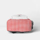 Un chica de garrote con un vestido de gingham rojo y blanco, collar de perlas, zapatillas y un ramo de margaritas. Se puede cambiar o eliminar la cita.