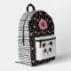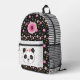 Una cara de oso panda adorable con motivos de coordinación, como un patrón floral negro y rosa, rayas blancas y negras y un patrón triangular blanco y negro decoran esta adorable mochila de chicas. Personalízalo con tu Monograma inicial. ¡Muy divertido para volver a la escuela o en cualquier momento! Diseñado para ti por Blackberry Boulevard.