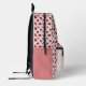 La mochila de este lindo niño muestra mis cucharaditas dibujadas a mano contra un fondo de un punto de polka rosa y blanco. Fácilmente personal con sus iniciales de monograma.