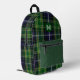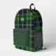 Mochila elegante y colorida realizada en el tracto escocés del clan verde y azul MacKellar. Gráficos de un patrón de cuero verde, cubre el área de bolsillo. Personalice el monograma de una letra, fijado en una placa circular, para que se ajuste a sus necesidades. Ideal para la escuela, el trabajo, los viajes y más.