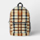 Mochila de chaqueta de búfalo intemporal con una estética masculina de leñador con terracota rústica y un patrón de gingham a cuadros marrones para un estilo duradero diario.