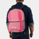 En esta mochila hay tres tonos rosas. El texto blanco está en el bolsillo. Puede editar el texto para mostrar el monograma correcto.