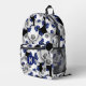 Esta fresca mochila de fútbol presenta balones de fútbol realistas, de tamaño variado, azules, grises y blancos, girados de todas formas en un patrón de aspecto 3D sobre un fondo negro - personalizar con el monograma del futbolista - de katz_d_zynes