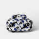 Esta fresca mochila de fútbol presenta balones de fútbol realistas, de tamaño variado, azules, negros y blancos, girados de todas formas en un patrón de apariencia 3D sobre un fondo negro - personalizar con el monograma del futbolista - de katz_d_zynes