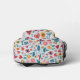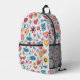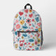 Esta es una mochila muy enérgica con corazones dibujados a mano y flores de estilo crayón.