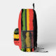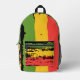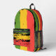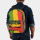 Esta mochila Rasta/Reggae diseñada para adaptarse a tu estilo. Presenta un escudo rasta gráfico en el bolsillo delantero y rayas rastas rojas, rojas, doradas y verdes en este diseño para un aspecto único. ¡El regalo perfecto para volver a la escuela, Navidades o un viaje de invierno al Caribe!