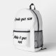 Ligera y duradera, nuestra mochila todo-sobre-imprimir personalizado es justo lo que necesita. El espacioso interior es ideal para viajes, escuelas, gimnasios o cualquier necesidad de almacenamiento móvil. ¡Trae tus cosas con estilo! Características Correas de hombro acolchadas ajustables, dos cámaras en el interior para el almacenamiento de portátiles, bolsillos laterales de malla y una etiqueta de identificación.