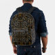 Backpack all over print cut sew style storage bag printed with a Creamy Golden Yellows Raked Pattern On Black six sided symmetrical repeat patterned geometrical original graphic art design illustration by TheFabricSeal at Zazzle #ZazzleMade https://www.zazzle.com/store/thefabricseal