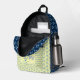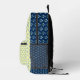 Una mochila con flores de crocus azules y campanillas azules. Las imágenes, el fondo y el texto se pueden personalizar. Arte original de W.B.