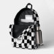 Cuadrados de cuadros de geometría blanca y negra Monograma Mochila impresa. Bolso de accesorios de moda de Guay para cualquiera. Patrón cuadrado geométrico retro de Guay. Baldosa de época Negro y Blanco moderno checker. Crea una mochila única y personalizada con un toque personalizado. Monograma moderno con tu inicial y tu nombre para ese toque personal extra.