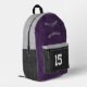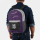 Choose your own colors! This softball themed backpack is accented with the image of a minimalist softball (only the stitches are represented in white) - the front pocket can be personalized with the athlete's name and jersey number - you can customize the colors of the backpack's components--access the Zazzle design tool by pressing the "Edit this design" button above to change the backpack component colors, currently purple, black and light gray - a digitally-created, texture-look graphic overlies the backpack's individual components for a distressed appearance, which can be removed if desired - by katz_d_zynes