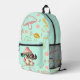Mochila Impresa Custom Name Backpack Teal Mushroom Pattern School