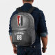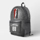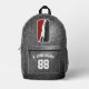 Show your love for the game with this customizable basketball backpack featuring bold black and red tones against a faux glitter background. The design centers around a dynamic silhouette of a basketball player going in for a layup, housed in a stylized cartouche shape. Add your name and jersey number for a personalized touch that’s perfect for players, fans, and coaches alike. Whether for game day, team banquets, or fan gear with flair, this school book bag is a slam dunk for basketball lovers.