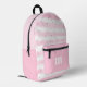 Mochila personalizada y ligera con rayas y puntos color agua rosados y blancos y personalizada con un monograma, nombre o iniciales en su elección de estilos de fuente, tamaño, color o ubicación o elimine el texto de ejemplo para dejar el área en blanco en EDIT. ASISTENCIA: Para obtener ayuda con la modificación o personalización del diseño, el cambio de color o si desea coordinar elementos, póngase en contacto con el diseñador ANTES DE PEDIDOS a través de la pestaña MENSAJE de charla de Zazzle a continuación o envíe un correo electrónico a makeitaboutyoustore@gmail.com.
