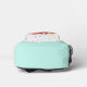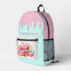 Mochila impresa de temática burguesa, de color turquesa claro y rosa, con vibraciones de coqueta, con la glaseada rosada, el colorido patrón de puntos polka y donuts bonitos, uno de ellos con un arco. Un regalo perfecto para un chica dulce :) Personalice el texto fácilmente o déjelo en blanco. - Kate Eden Art