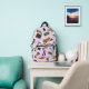 El diseño presenta un patrón que consiste en imágenes de un bus escolar, una laptop, libros y pizarra como fondo del primer/monograma que usted suministra. La carta está en morado, y el fondo es lavanda. ¡Qué lindo!