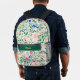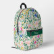 Carry your essentials in fresh, preppy style with this personalized floral backpack. Featuring a vibrant botanical pattern of pink, blue, and yellow blooms layered with lush greenery, this backpack brings cheerful elegance to everyday adventures. The deep green front pocket accent highlights a personalized name in refined script, adding a clean, custom touch that makes this bag uniquely yours. Designed for both style and practicality, this backpack offers roomy storage for school, work, travel, or daily outings, while comfortable straps and durable construction make it easy to carry wherever the day takes you.
