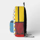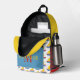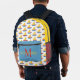 This cute backpack features a toy sailboat pattern with matching color blocks of red, blue and yellow. Personalize the monogram on the front with your choice of name and initial.