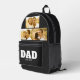 This backpack features 3 customizable photos of you and your child. Also features bold white lettering that says 'Dad', which you can swap out for a different (short) term or name, followed by the established line, where you can add the year you became a father. All colors and elements can be edited in the Zazzle design tool. ••• For more Father's Day gifts, visit my store Zazzle.com/Yeah_The_Boys ••• For custom orders, message me on Zazzle