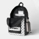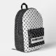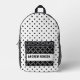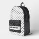 Haga una declaración con esta mochila impresa en personalizable de puntos de polka negro de moda. Diseñada para el estilo y la funcionalidad, esta mochila es perfecta para la escuela, el trabajo, los viajes o el uso diario. Personalízalo con tu nombre, iniciales o texto personalizado para crear un accesorio único que refleje tu personalidad. Durable, liviano y moderno — es imprescindible para cualquiera que ame la moda moderna con un toque lúdico.