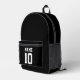 Nombre personalizado personalizado y número de mochila impresa en blanco y negro. Nombre blanco personalizado y número sobre fondo de color sólido plano negro. Todos los colores son editables. El estilo deportivo variado. Personalizar con tu nombre, edad, año, número o nombre del equipo deportivo. Un gran regalo para jugadores de fútbol, niños y adultos.