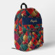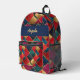 El rojo, el oro, el azul de medianoche y el verde azulado se combinan para hacer una mochila de aspecto rico. Hermoso, elegante y perfecto para la escuela o el senderismo. Personalice su nombre en una banda azul de medianoche en la parte superior.