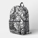 Mochila Impresa Dibujo Floral Zen blanco y negro con estampado