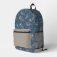 Personalize a blue and tan dinosaur bones patterned backpack for school this year. So fun for a boy. Designed for you by Blackberry Boulevard.