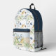 Mochila cúpula con dinosaurios y huellas rodeadas de plantas extravagantes en colores azul, verde y amarillo. Personalice fácilmente el nombre o escriba un monograma. Ideal para las vacaciones de verano o como bolso de escuela y más - Arte Kate Eden