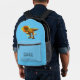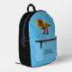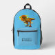 En esta encantadora mochila hay un dinosaurio de boca abierta con dientes afilados de afeitar esperando la batalla con una espada en sus pequeñas manos. Perfecto para cualquier niño que ame el espíritu de los dinosaurios. Se puede personalizar en el bolsillo delantero con un nombre para hacerlo único propio.