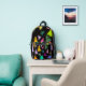 Te encantará llevar esta mochila de impresión en todo el mundo, con los diferentes tamaños y colores de los triángulos, creados con bruscas pinceladas, sobre un fondo negro. ¡Elegante y divertido!