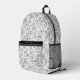 Esta mochila impresa personalizada tiene un patrón retro de dominó estriberas en colores blanco y negro. Un gran domina este diseño para alguien que ama los juegos y el estilo retro. Puede hacer que el patrón de dominó en esta mochila sea mayor o menor.