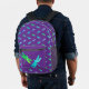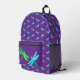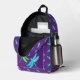 Mochila para niños con libélulas azules y verdes brillantes sobre fondo morado