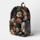 Mochila Impresa Dramática Naranja blanco elegante flores retro