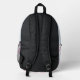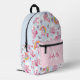 Esta mágica mochila impresa presenta Unicornios rosas y Pegasus flotando en nubes y arcos sobre un suave fondo azul. Añade tu nombre para un toque personal.