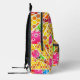 Mochila colorida, soleada, de piquetes de la pista de pepitas. El baloncesto es un deporte de cancha para cualquier edad y habilidad deportiva. Entre el almuerzo, los golpes y las largas manifestaciones se forjan amistades de toda la vida. Gráfica súper colorida con bolas de pickleball, peines de miel amarillos, naranjas, formas hexágonas, y un gran pickleball amarillo con gafas de sol y sonrientes.