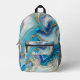 Mochila Impresa Elegante arte de mármol azul acuático falso purpur