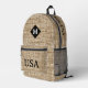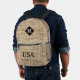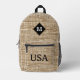 Diseño elegante con ilustraciones gráficas de burlap marrón con texto para personalizar en negro para viajeros estadounidenses.