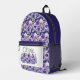 Mochila Impresa Elegante Pañoso Púrpura Pansies Floral