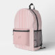 Mochila impresa a rayas blancas y rosadas con un monograma personalizado, ideal para trabajar o ir a la escuela